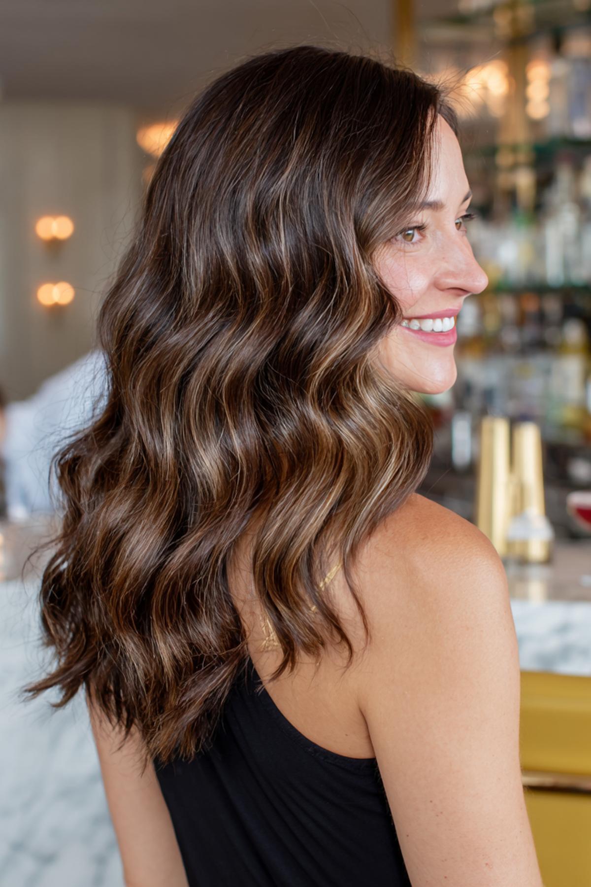 Een diepbruine basis met micro-highlights voor een bijna onzichtbare overgang. Werkt goed bij dunnere lokken omdat het optisch voller oogt. Mooi bij koele en neutrale huidtinten. Kies voor toners in mokka-tinten en style met zachte S-waves voor beweging.