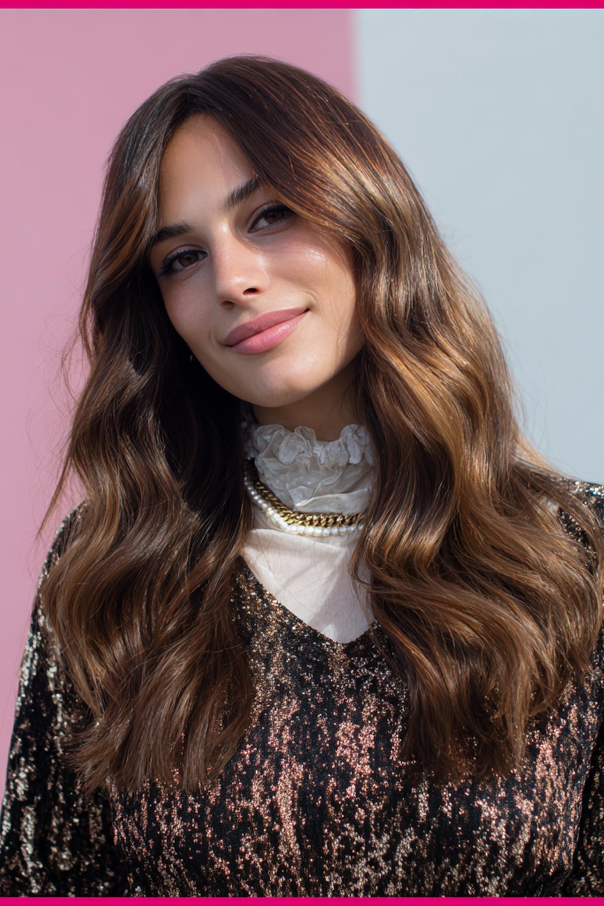 4. Verlicht de lengtes met balayage: kies karamel, mokka, toffee of honingaccenten en laat de punten subtiel lichter voor een sun‑kissed indruk zonder harde lijnen.