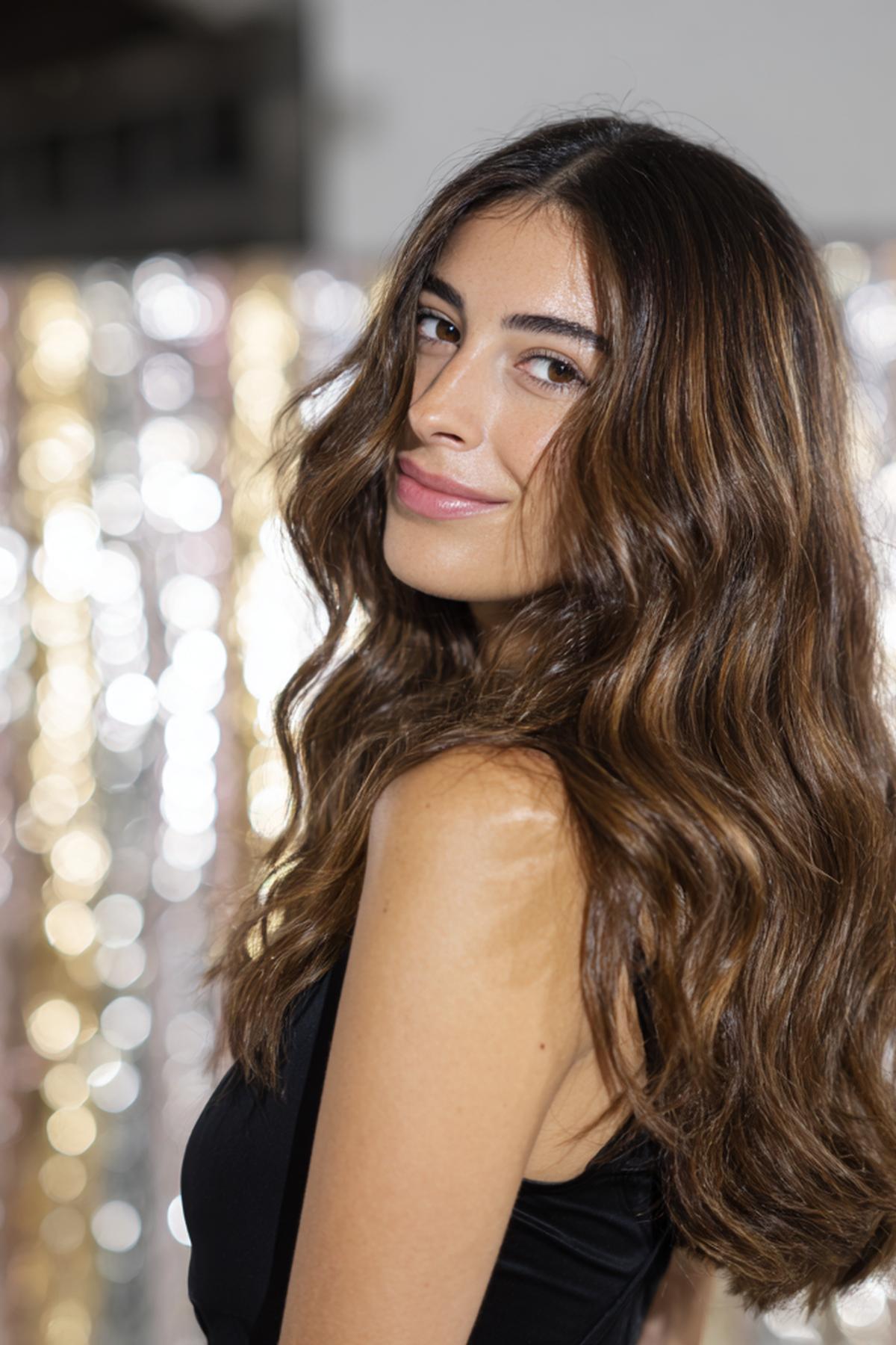 Deze zachte bruine golven krijgen diepte door subtiele highlights. Past mooi bij ovale en hartvormige gezichten en bij warme of neutrale ondertonen. Ideaal als je beweging wilt zonder groot kleurverschil. Vraag om fijne babylights en style met een lichte krulcrème voor een soepele finish.