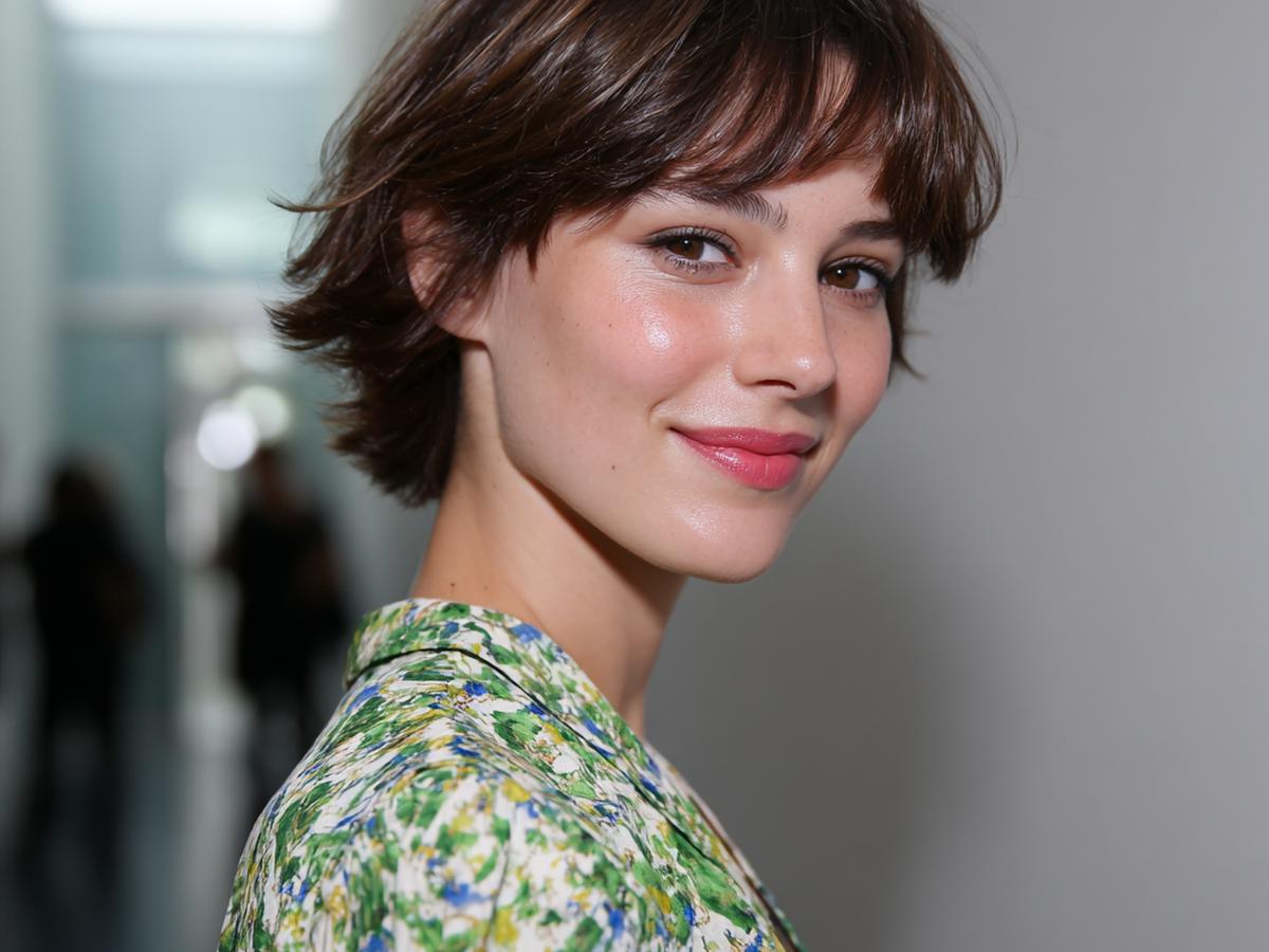 Katmanlı kısa kesim, yumuşak dalgalarla hacim kazanıyor; ince dokulu uçlar modern ve zahmetsiz bir görünüm veriyor.