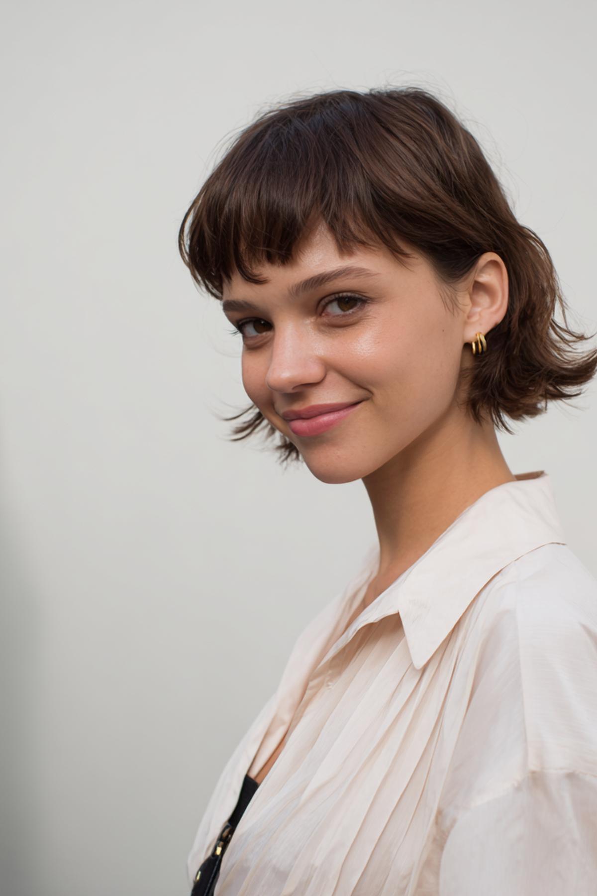 Short shag met curtain bangs