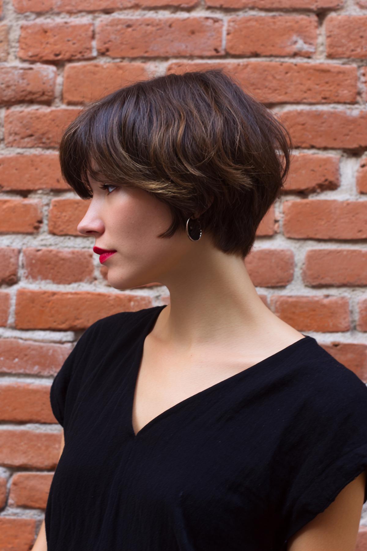 Kort haar kapsels: Gelaagde bob met curtain volume