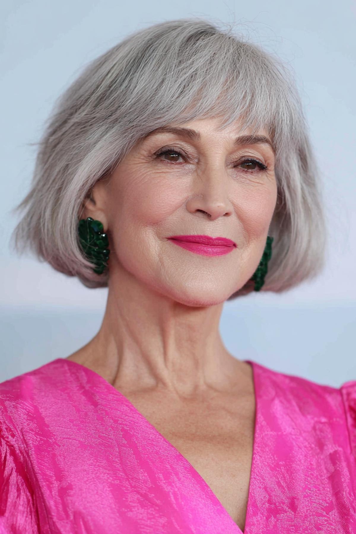 Een compacte korte bob met rechte pony. De strakke lijn laat grijstinten spreken en benadrukt de ogen. Geschikt voor steil tot licht golvend haar en ovale of vierkante gezichten. Föhn glad met een borstel voor een nette vorm en eindig met een druppel glans op de punten.