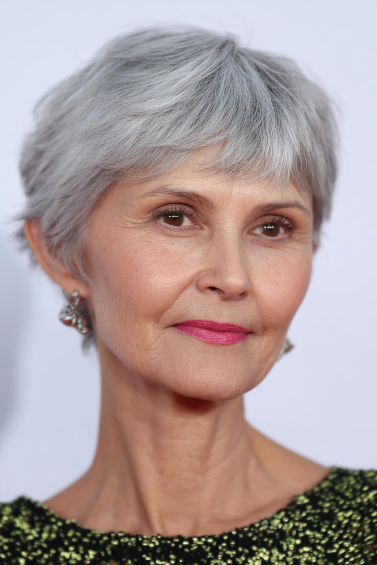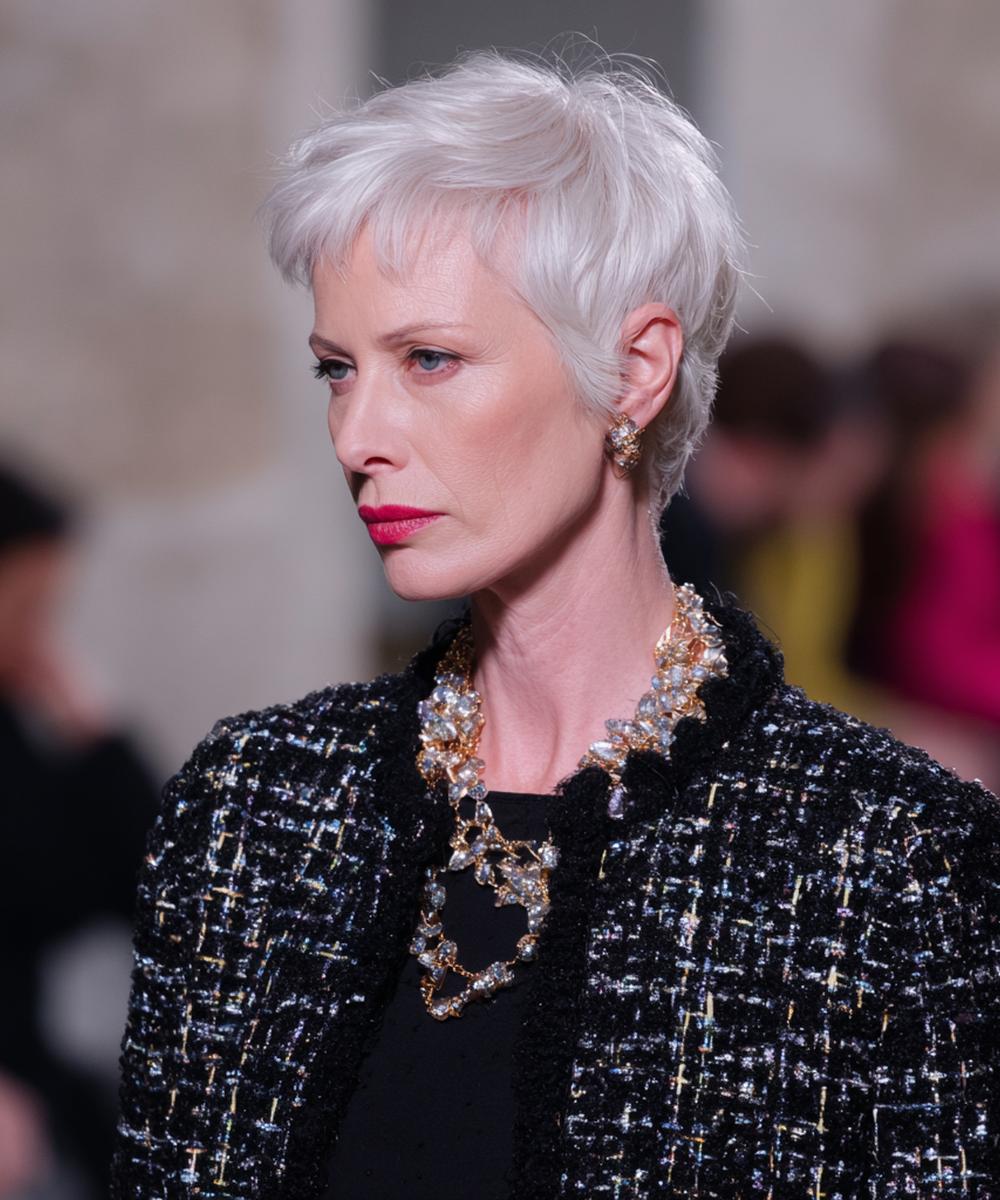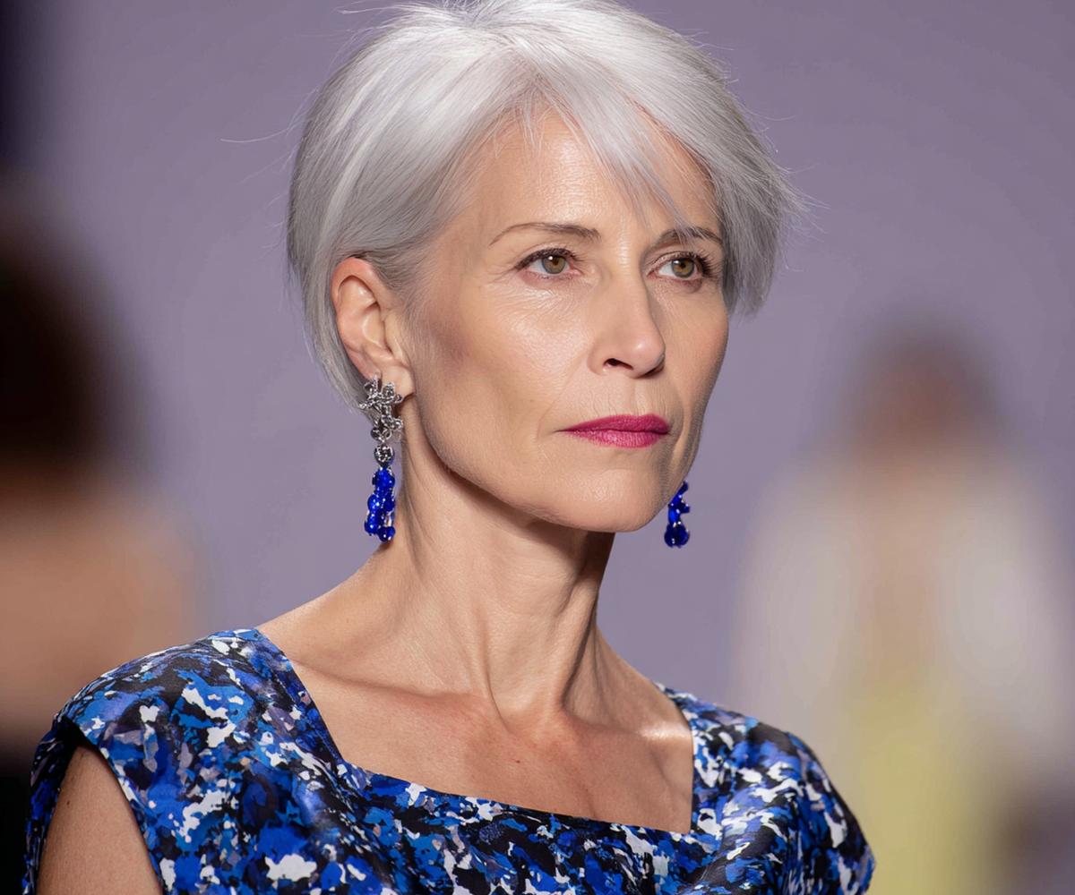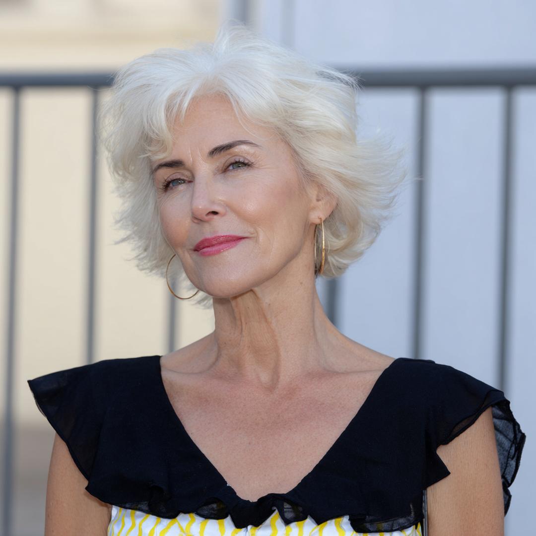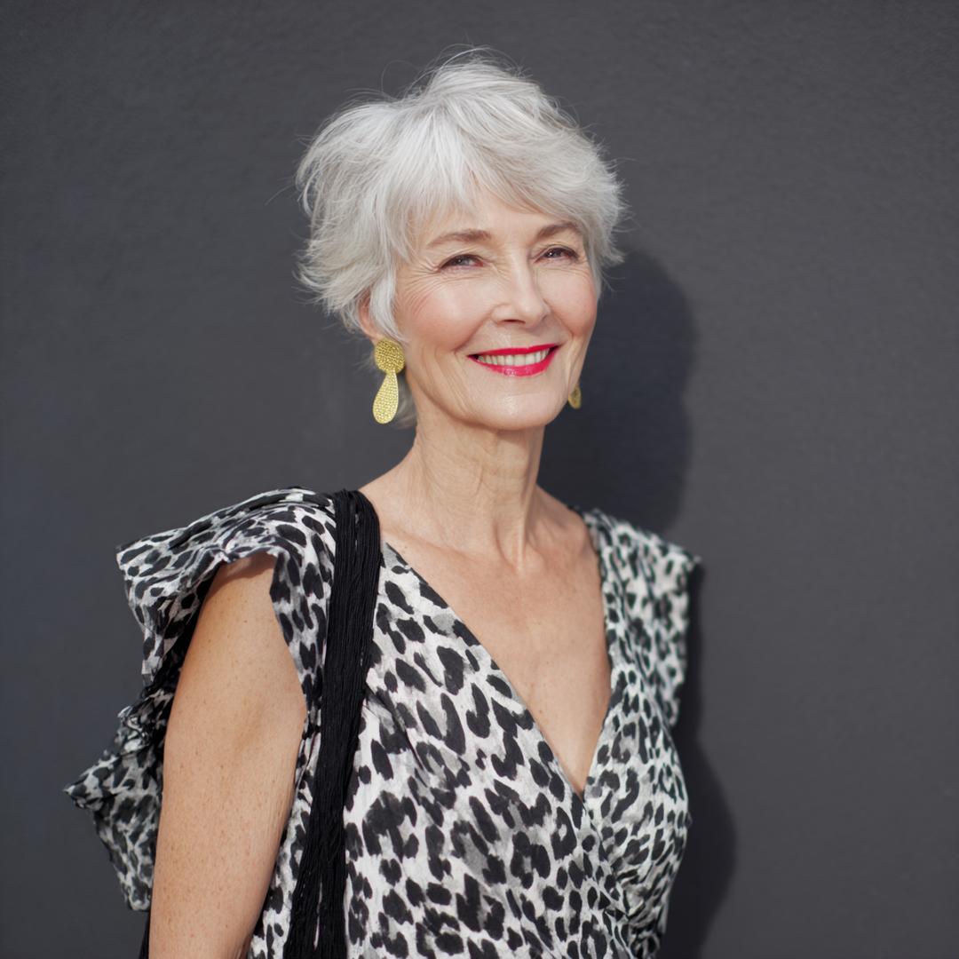 Grijs haar komt tot leven met een kort, luchtig model en gefilterde textuur. Het licht op de laagjes geeft diepte zonder veel product. Ideaal voor wie snel klaar wil zijn. Past bij ovale, lange en hartvormige gezichten.