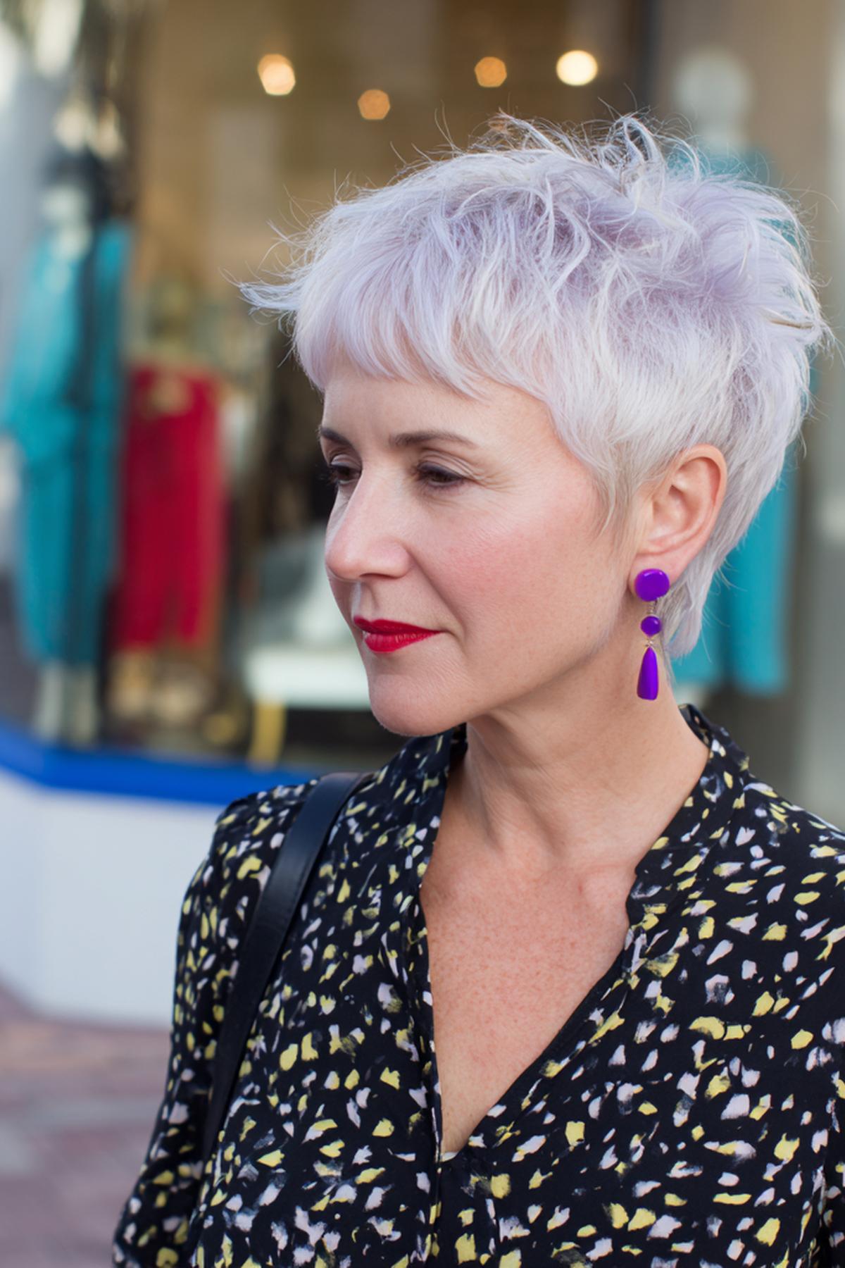 Speelse korte coupe voor grijs haar 50+